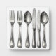 Elevate your space with timeless elegance! This sophisticated illustration showcases a classic arrangement of ornate silver flatware including forks, spoons, and knives rendered in detailed monochrome with intricate floral engravings on the handles. The vintage watercolor style and subtle shading create a refined, nostalgic mood that's perfect for adding a touch of heritage charm to any kitchen or dining area.