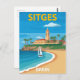 Vintage Sitges Spain Beach Travel Poster Postcard
