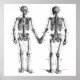 Vintage darkly humourous black and white image of a skeleton couple, one facing front, the other facing back, seemingly holding hands and looking into each other's eyes, as though they are about to begin a dance. Each anatomically correct skeleton is diagrammed with numbered bones, at one time possibly used in a science laboratory of old, or a classroom receiving a lesson in the human skeletal system. And here you have a poster of this image, perfect for displaying in said lab or class!