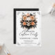 The terracotta flowers and damask pattern on the back of these invitations add a little elegance.