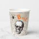 A vintage-inspired skull illustration with bold orange “Boo!” lettering and a hand-drawn spider, layered over aged script text. This design mixes gothic ephemera with classic Halloween details, perfect for spooky gatherings, vintage-themed parties, or gothic romance entertaining. A unique party cup that adds character to tablescapes while keeping the vibe moody and stylish.