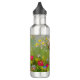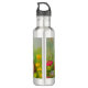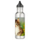 Water Bottle featuring a smiling cat! This funny cat is playing in a garden of pink, orange, red, and blue flowers. A remarkable gift for cat lovers and Victorian art enthusiasts!