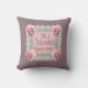 A Victorian style antique smokey mauve damask pattern pillow with pink roses and faux lace. The text can be personalised with a name or message for any occasion! Think baby's room, Grandma's house, wedding or anniversary gift. Fabulous in a shabby chic, country French, Victorian, English countryside, or eclectic décor.