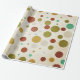 Pretty holiday or winter wrapping paper features a vintage white background with polka dots in various sizes in red, olive, off white, gold, and teal with snowflakes scattered here and there!