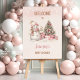 Cute Christmas girl baby shower Banner featuring a lovely snowman, Christmas tree with gifts and snow in blush pink with vintage vibes. Easily personalise the text. - Kate Eden Art