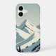 A calm retro winter scene with snowy peaks and cool soft tones.