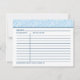 Simple and elegant kitchen recipe card features a pretty blue floral lace pattern border and colour scheme of pale blue, white, and navy blue. Coordinates with our "Something Borrowed" wedding bridal shower invitation.