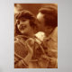 Vintage ephemera featuring a love and romance photo with a young couple holding tennis rackets. A romantic sports photo with newlyweds flirting and about to play a game.