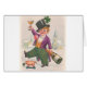A vintage 1920's-30's St. Patrick's Day postcard illustration of a cute boy wearing top hat and tails and merrily toasting with a glass and bottle of champagne. There are shamrocks on his hat and in the mouth of a little toy pig. Much good luck to be had by all with this one!