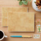 Custom A6 envelopes featuring a printed image of a stained, old, brown, grungy paper texture. Choose your paper type in the menu.