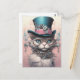 Vintage Steampunk Cat in Blue Tophat Postcard