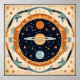 Stellar nursery, many newborn stars , space, cosmos, universe drawing, breathtaking beautiful colourful pattern, mid-century style.