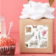 The size is perfect and the design has a softness with the beautiful flowers around the edges. The black lettering on the white background is sharp. It stands out beautifully. I love the Mixture of font styles as it catches the eye.