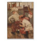 Vintage artwork by Clara M. Burd depicts a cute but comical scene in a home where a little girl is busy stitching up a hole in the back of a little boy's pants while he's wearing them. He stands patiently waiting to go out and play, holding a ball under his arm. She has a sewing basket on the floor and her bonnet hangs on a chair. The American artist, Clara M. Burd (1873-1933) was born in New York, and studied art in New York City and later in Paris. She is best known for her illustrations for children’s books, but she also illustrated for magazine covers, designed stained glass and murals for churches, and painted children’s portraits and scenes from historical periods. This card is blank inside for your own message.