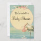 Vintage Stork Baby Girl Pink Blanket Baby Shower Invitation
