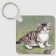 Vintage Striped Kitten Illustration Key Ring