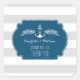 Wedding thank you favour tag stickers with wide vintage light grey and white stripes pattern, rustic navy blue frame, and chic nautical details. A great way to decorate wedding favours.