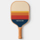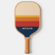 Create your own retro personalised pickleball paddle. Features abstract 70s vintage stripes design and custom name in a classic style typography.