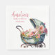 Personalised baby shower napkins featuring a pretty vintage stroller bursting with beautiful flowers. These napkins are the perfect addition to your celebration, adding a touch of vintage charm.
