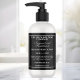 A product label for cosmetic bottles featuring a black background and a vintage style. This label contains space for your product name, business name, product weight, ingredients, instructions, social media, and business address. This label measures 3.75 inches by 2 inches (95 mm by 51 mm) and is suitable for bottles with a diameter of 1.2 inches (31 mm) or more such as 4 oz (120 ml) bullet, cylinder, and boston round bottles. It can also be used for cosmetic jars and other types of cosmetics packaging.
