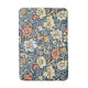 Vintage-style botanical wallpaper pattern in pink, blue, and yellow featuring flowering branches and long-tailed birds against a pale blue background.