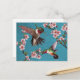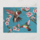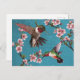 Beautiful vintage style painting of hummingbirds, on a blue background with cherry blossoms.