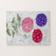 My original digital designed artwork is featured on this pretty puzzle, consisting of a vintage grey pattern given a slight distressed appearance, with a vintage illustrated Hydrangea flower trio in front. The size of this unique puzzle is 11” x 14”, and in the ‘challenging’ category, however you may size up or down as desired.