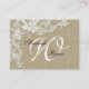 Vintage style lace design and burlap look information insert cards. To Match invitations, customise text as needed. Add the bride and groom's names with a monogram and wedding date to the back. Not real burlap.