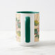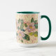 My original artwork on this mug features a vintage pattern of leafy vines in the background of vintage style roses which are in an illustrated style. The vintage appearance of the background and foreground is designed in complementary colours to give this one-of-a-kind mug an artsy flair. The inside and handle of this mug is green; however, you may change the colour if desired.