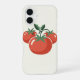 Retro illustration of stylized tomatoes in a muted red and green palette.