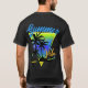 This vibrant design features a striking silhouette of palm trees on a small island, set against a bold triangular background. The triangle itself showcases a gradient of warm sunset hues transitioning to cool blues, suggesting a tropical dusk or dawn. The outer and inner triangular frames have a distressed, vintage texture, completed by a flock of birds in flight, giving the artwork a classic yet energetic summer vibe.