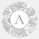 This vintage monochromatic sunflower toile pattern sticker in grey and white with a custom monogram in elegant typography and matching circular borderline is great for paper crafting, scrapbooking and adding a personalised accent as envelope seals. Designed by © Tim Coffey.