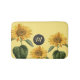 A bath math with a vintage botanical illustration of three sunflowers on a yellow background to customise with your initial.