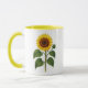 A cheerful vintage sunflower botanical design wraps this mug with sunny charm. Featuring the floral illustration on both sides and a bright yellow interior, it's perfect for adding a touch of garden warmth to your morning coffee or tea routine