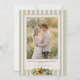 On the reverse side, this invitation features a dedicated space for a custom engagement photo, allowing couples to add a meaningful and personal element to their wedding stationery. The photo is framed within a soft, coordinated layout that complements the overall design, while space for RSVP or wedding website details provides a seamless and convenient way for guests to respond online and access wedding details. A delicate floral accent at the bottom ties the entire suite together, creating a cohesive and polished look from front to back.