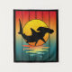 Vintage Sunset Hammerhead Shark in Wave Ocean Scenery.