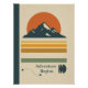 This poster captures a quiet moment of escape: mountains, a warm retro sunset, and space to breathe.