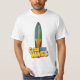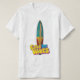 The t-shirt design features a nostalgic and summery image: a vintage surfboard with beach scenery in the background, and the phrase "Catch the Waves" in a groovy font. This design evokes a sense of nostalgia for the classic surf culture of the 60s and 70s, appealing to beach lovers and those who appreciate retro aesthetics.