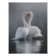 This serene art print features two swans gliding gracefully across a calm lake, painted in gentle pastel tones for a peaceful, dreamy feel.