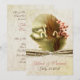 Lovely vintage artwork of white swans, in the water sets the tone for this elegant wedding invitation. The front of the invitation is decorated with, the swan painting set over graphics of a cream textured looking background, with an elegant ribbon, with flourishes and a single pearl, below the painting. Names of the couple and wedding date, in a rose and brown coloured script text, below the ribbon. The back of the invitation has the same textured looking cream background with fully customisable script text. Personalise the front and back for your wedding. Matching wedding products available.