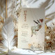Celebrate timeless elegance with this Art Nouveau-inspired wedding menu card, featuring a captivating vintage swing illustration. The delicate design highlights a woman in a flowing mint green gown with a golden ribbon, set against a soft beige background with warm brown and gold accents. The artistic typography complements the romantic, antique theme. Perfect for weddings with a classic, vintage, or artistic touch, this menu card offers a blend of sophistication and nostalgia. Customise it for your special day to add exquisite detail to your wedding decor.