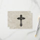 This elegant rsvp features a vintage swirl background and a black Catholic / Celtic cross.