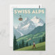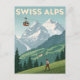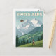 Capture the adventure of the European mountains with this vintage-style travel poster postcard. This stunning illustration of the Swiss Alps features majestic snow-capped peaks, lush green slopes, a classic gondola lift, and a hiker enjoying the scenery. The design evokes the golden age of travel and mountain sports. Perfect for sending a thoughtful message, adding to a travel-themed collection, or framing as a piece of rustic, wanderlust-inspired wall art. Ideal for lovers of Switzerland, skiing, hiking, nature, and retro tourism art.