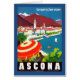 Very pretty vintage travel poster from Switzerland advertising travel to Ascona. It shows a lovely harbour view with mountains in the background.