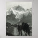 Vintage Switzerland, track on the Jungfrau, a man and his horse