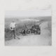 From an original photo, a scene of a lady and gentleman with a Hurtu or Léon Bollée c1897 three-wheeler "voiturette" complete with a fringed surrey and basket on the back. A man (Hilaire Malgras) is standing with a scythe in front, and a lady holding opera glasses at the rear. The scene was photographed on the road to Pulnoy, near Nancy, France.
