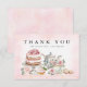 Send heartfelt thanks with this elegant tea party bridal shower thank you card. Featuring a watercolor illustration of a vintage floral teapot, layered cake, teacup, and sweet pastries, this pink and gold design is perfect for a romantic or garden-style bridal celebration. Customise with the bride’s name or “the future Mrs.” for a thoughtful, personalised finish.