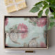 This vintage-inspired design showcases antique teapots with pink roses on a light green diamond pattern background. Perfect for decoupage artwork, paper crafts, or wrapping gifts.