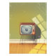 Vintage Television cartoon - A old CRT television in a room with he end credits of a TV cartoon on the screen.