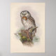 Vintage illustration of beautiful Hawk Owl birds on a tree. Date printed 1873.